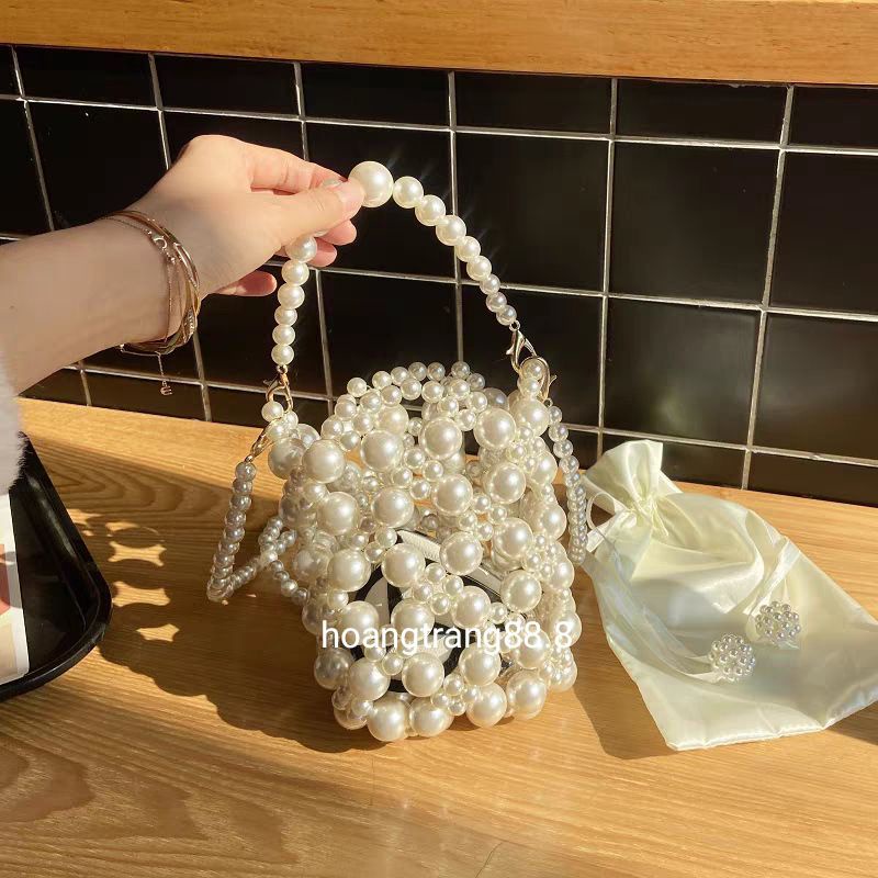 Túi xách tay kết hạt cườm giả ngọc trai handmade sang chảnh free ship